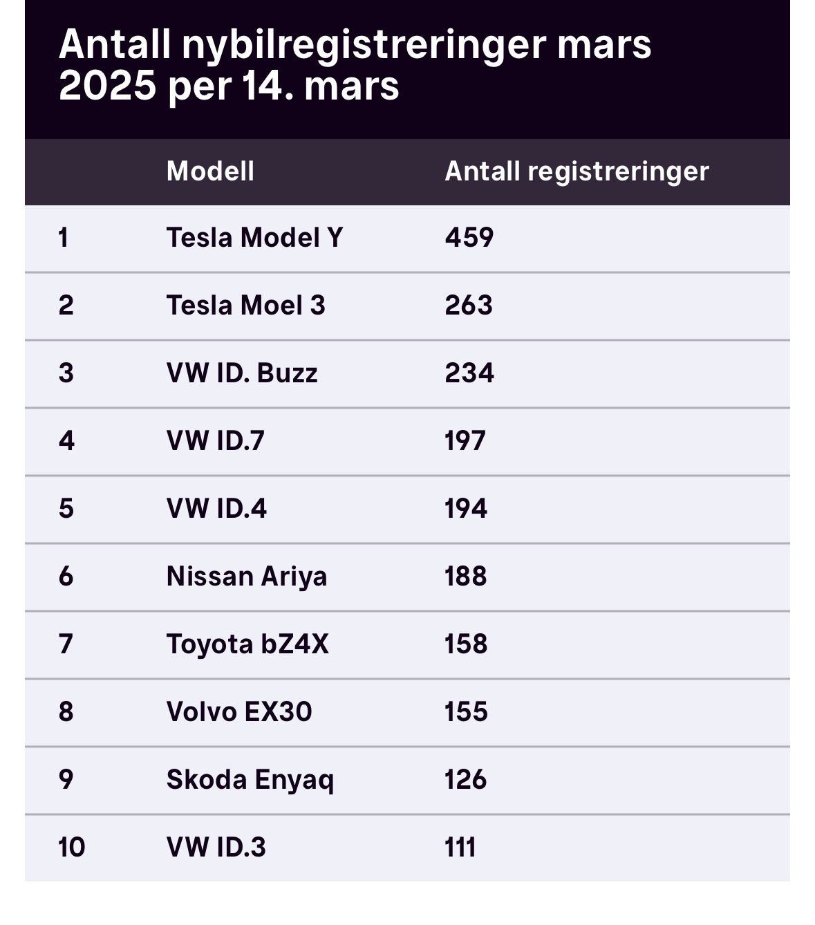 Anonym bruker Skrevet 20. mars 2025 #26 Skrevet 20. mars 2025 Anonym bruker skrev (7 timer siden): De boikottes i mange land nå. I Norge gjøres det tiltak for å fjerne Tesla i alle offentlige stillinger. Ettermarkedet vil da bli vanskelig å opprettholde, så da fases de ut. Anonymkode: 33980...15f Greit at man mislliker Tesla, men dette er bare tull og ønsketenknig. Anonymkode: 3ac03...cb4